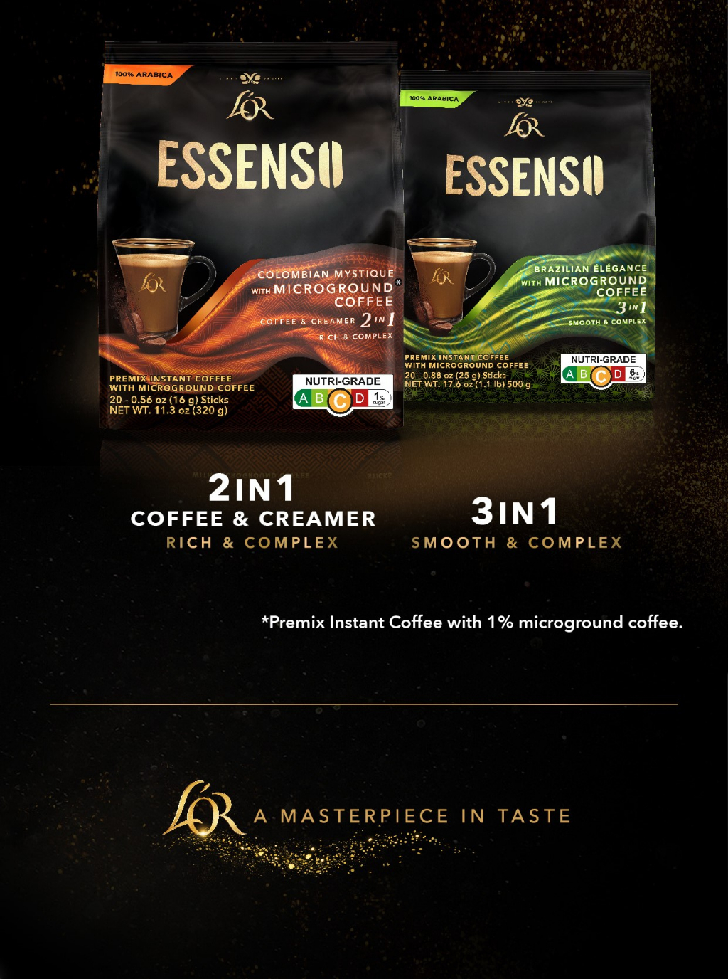 Born in France, L’OR is known around the world for coffee blends artfully created to deliver unique layers of flavour and taste pleasure. L’OR ESSENSO Premix Coffee Blends are created with finely ground coffee beans (1% of total product) and instant coffee, made from 100% Arabica beans for a superior coffee experience.