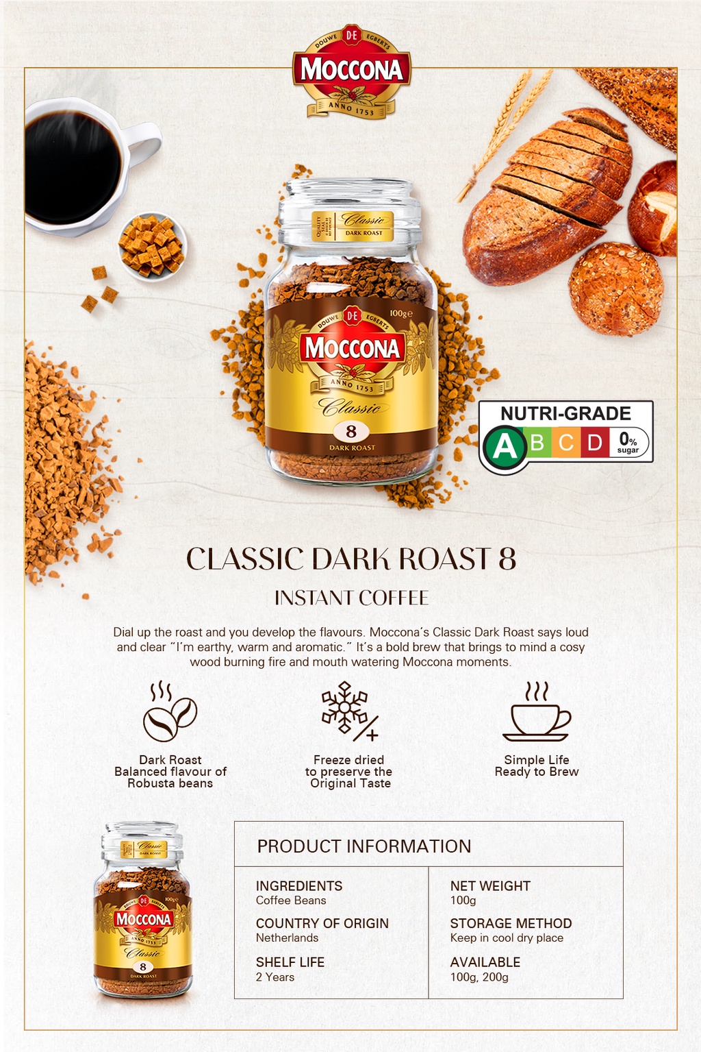 Dial up the roast and you develop the flavours. Moccona’s Classic Dark Roast says loud and clear ‘I’m earthy, warm and aromatic’. It’s a bold brew that brings to mind a cosy wood burning fire and mouth watering Moccona moments.