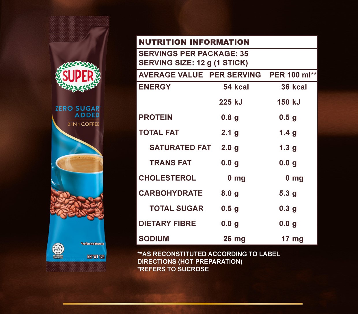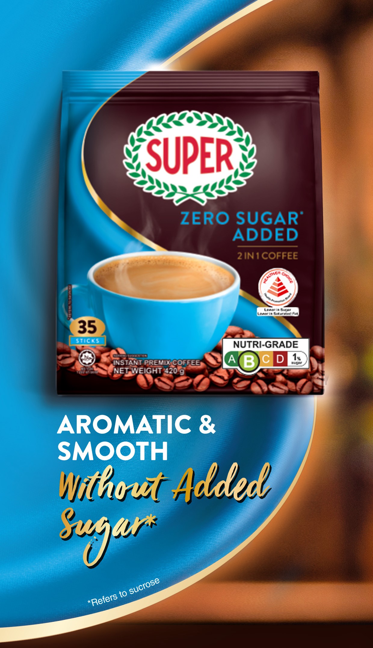 SUPER Zero Sugar* Added is an aromatic, smooth cup without sugar added.